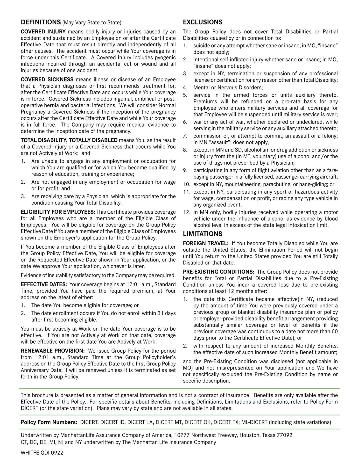 We offer simplified issue disability policies for Federal employees: